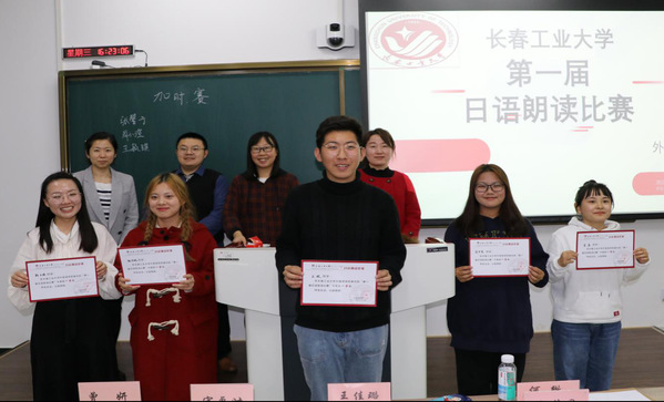 此次朗读比赛题目为《いただきます》《< 何もございません>の日本文化》《外国語を学ぶコツ》《何より健康》《聞耳頭巾》。选手可以任选一篇文章朗读并按照抽签顺序依次进行比赛。在朗读环节中,选手们语音语调标准、吐字清晰、表达流利,尽情地展示自我风采。最终,经过激烈的角逐,王孟秋、韩宇航、刘叶萌3名同学荣获特等奖,宋晶、斯日格、金尹美、王政、祝佳妮5名同学荣获一等奖,张悦等10名同学荣获二等奖,王毓琪等18名同学荣获三等奖。