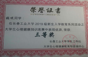 随着社会的发展,心理问题也同样成为了人类身心健康中重要的一环,因此大学生的心理健康也应引起足够的重视。相信此次荣获“第三届全国百佳心理委员”称号的张悦将不断学习,不断努力,不断进取,引领pg娱乐电子游戏官网同学朋辈之间开展更加丰富多彩的心理健康辅导活动。