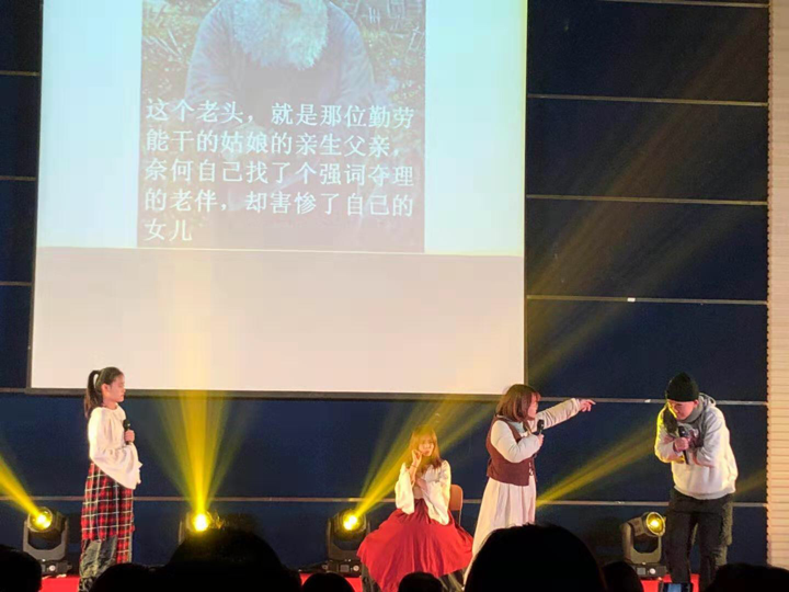 大二同学们则为大家奉上话剧《严寒老人》(《морозко 》)。同学们服装出彩,表情生动,台词功力一流,生动诠释了这部俄罗斯童话中的经典之作,收获全场热烈掌声和高度评价。