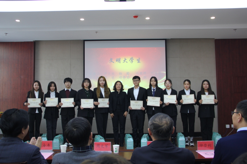 学院党委副书记王颖群为文明大学生获奖代表颁奖