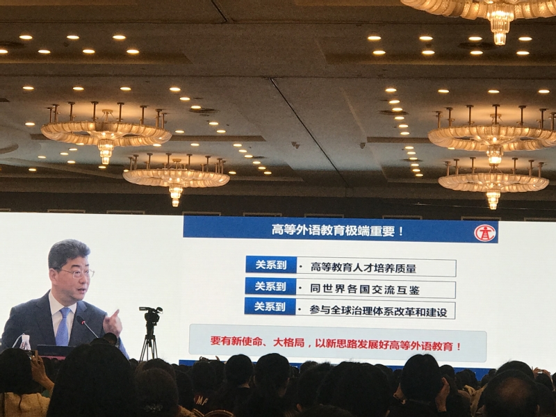 全国高等学校外语教育改革与发展高端论坛已经举办至第四届。本届论坛由北京外国语大学、教育部高等学校外国语言文学类专业教学指导委员会与教育部高等学校大学外语教学指导委员会联合主办,特邀上海外国语大学与大连外国语大学协办,委托北京外国语大学中国外语与教育研究中心、北京外国语大学中国外语测评中心和外语教学与研究出版社共同承办。论坛上更是邀请了教育部高等教育司吴岩司长做了“识变 应变 求变---新使命 大格局 新文科 大外语”的报告。吴岩司长指出,高等外语教育发展要超前识变、积极应变、主动求变,着力培养“一精多会”、“一专多能”的高素质国际化复合型人才。