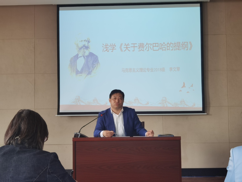 在“三原四史”读书班集中学习中,李文章做了题为《浅学< 关于费尔巴哈的提纲>》的读书心得分享,从写作背景、主要内容、主要观点、地位意义等方面,介绍了这个“包含着新世界观的天才萌芽的第一个文件”,使大家对历史唯物主义的起源有了更深刻的认识。为进一步把读书班抓实,李文章就读书班第一轮学习进行了部署,以《中国共产党简史》《毛泽东邓小平江泽民胡锦涛关于中国共产党历史论述摘编》《论中国共产党历史》为主要内容,以学院党员骨干为主讲领学,落实了具体篇章任务,下发了《pg娱乐电子游戏官网入口党委“三原四史”读书班课表(第一轮)》。