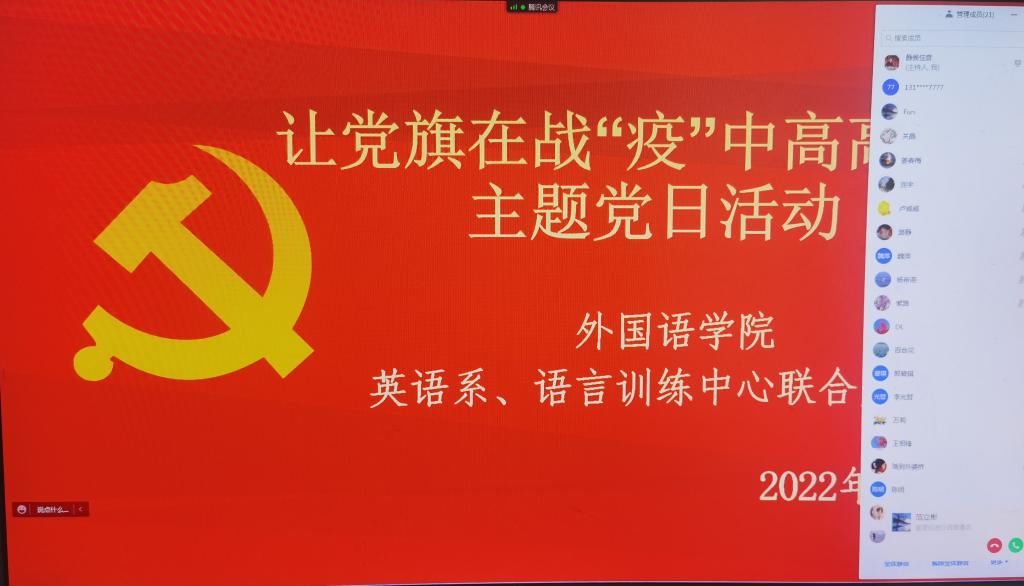 新闻网讯(通讯员 葛蔓)为进一步发挥党支部和党员作用,切实抓好疫情防控工作,pg娱乐电子游戏官网入口党委组织各党支部开展了“让党旗在战‘疫’中高高飘扬”主题党日活动,全体党员参加了此次线上活动。