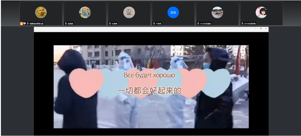 俄语系全体师生相聚云端,热情交流互动,通过朗读俄罗斯文学作品经典选段,共同感受俄语的韵律之美,探索俄罗斯文化的精神内涵。俄语系主任张美在开幕致辞中代表俄语系全体老师向同学们表达问候,对疯狂俄语协会的发展寄予美好祝愿,通过朗读诗歌《Учителя по жизни были строги》(生活老师们很严厉),鼓励同学们勇敢乐观地面对困难,等待春暖花开时。往届工大学子们也一直心系母校,2012级俄语生,目前就读于莫斯科国立大学的刘巧芳博士代表俄语系毕业生们从遥远的异乡为老师和学弟学妹们送来祝福。