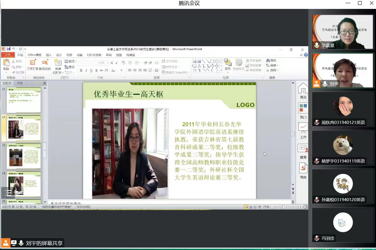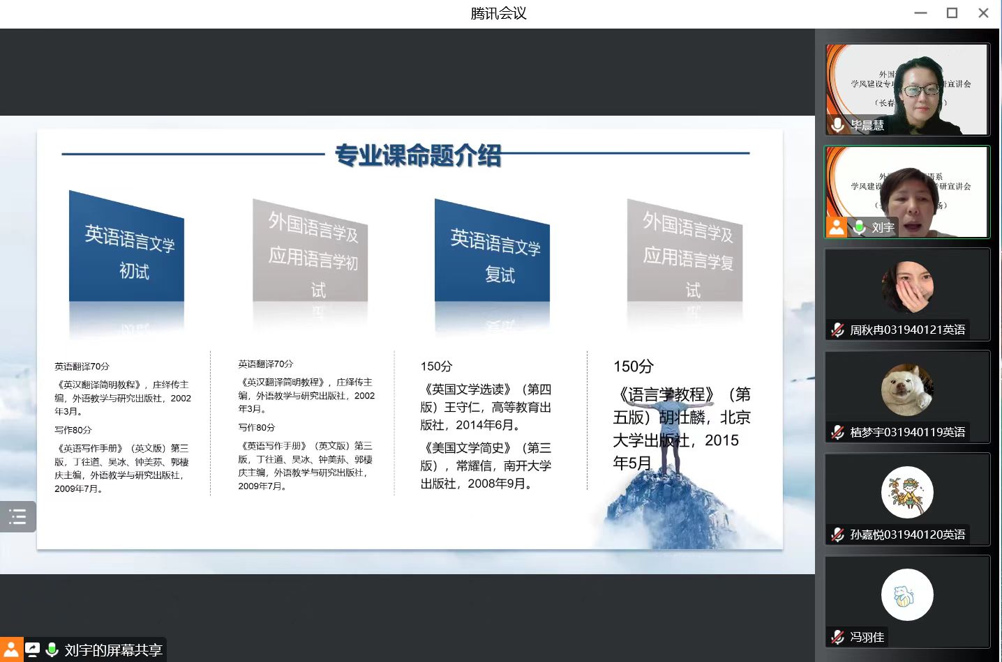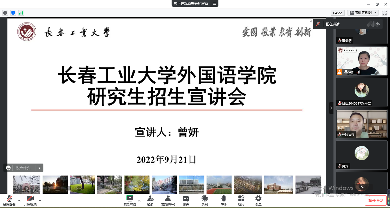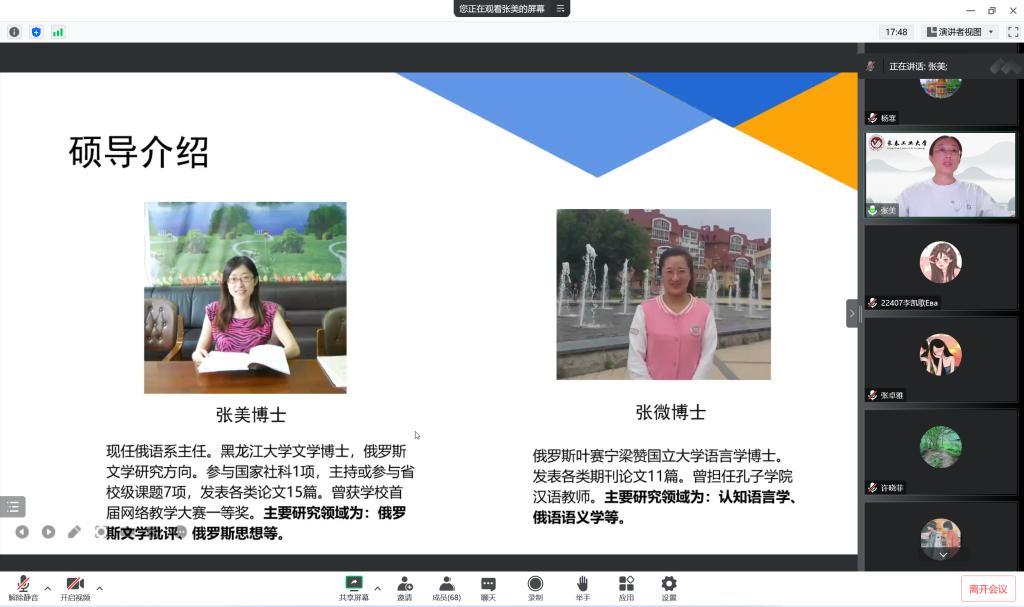 新闻网讯(通讯员 张美) 为增进学生对报考院校和专业等方面的了解,提升考研积极性,9月21日晚7点,pg娱乐电子游戏官网入口副院长曾妍、英语系主任刘宇和俄语系主任张美,通过腾讯会议平台,为长春光华学院pg娱乐电子游戏官网入口的同学们召开了线上考研宣讲会。该校pg娱乐电子游戏官网入口英语系主任毕晨慧、日语系主任崔伟和俄语系主任许晓菲分别主持三个专业的线上会议,19、20、21级学生参加了本次宣讲会。