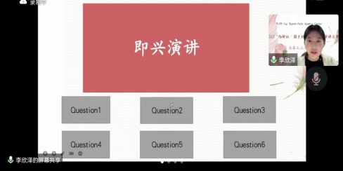 在第二轮比赛中,四位选手根据即兴演讲题目做出了精彩的演讲,并回答了老师的提问。