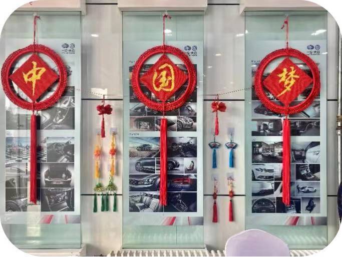 展会开幕前,翻译志愿者前往一汽大众国际交流展区协助艺术家老师们以及一汽工作人员进行布展。此次展览汇集了国画、剪纸、手编、书法等中国传统文化,为进一步向外国友人展现中华文化的非凡魅力,翻译志愿者提前做好了各项相关准备工作。