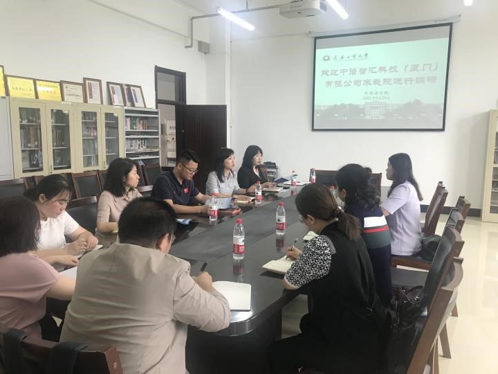 王轶院长首先代表学院对中语智汇科技(厦门)有限公司的到访表示热烈的欢迎,并从学院基本情况、学科建设、师资力量等情况进行了详细介绍。其次,李秀文院长就学科优势特色等方面分别介绍pg娱乐电子游戏官网四个专业培养特色。最后,王轶院长希望双方从校企协同育人的角度出发,充分发挥双方资源优势,优化人才培养机制,为pg娱乐电子游戏官网学生提供更具发展实习岗位机会。