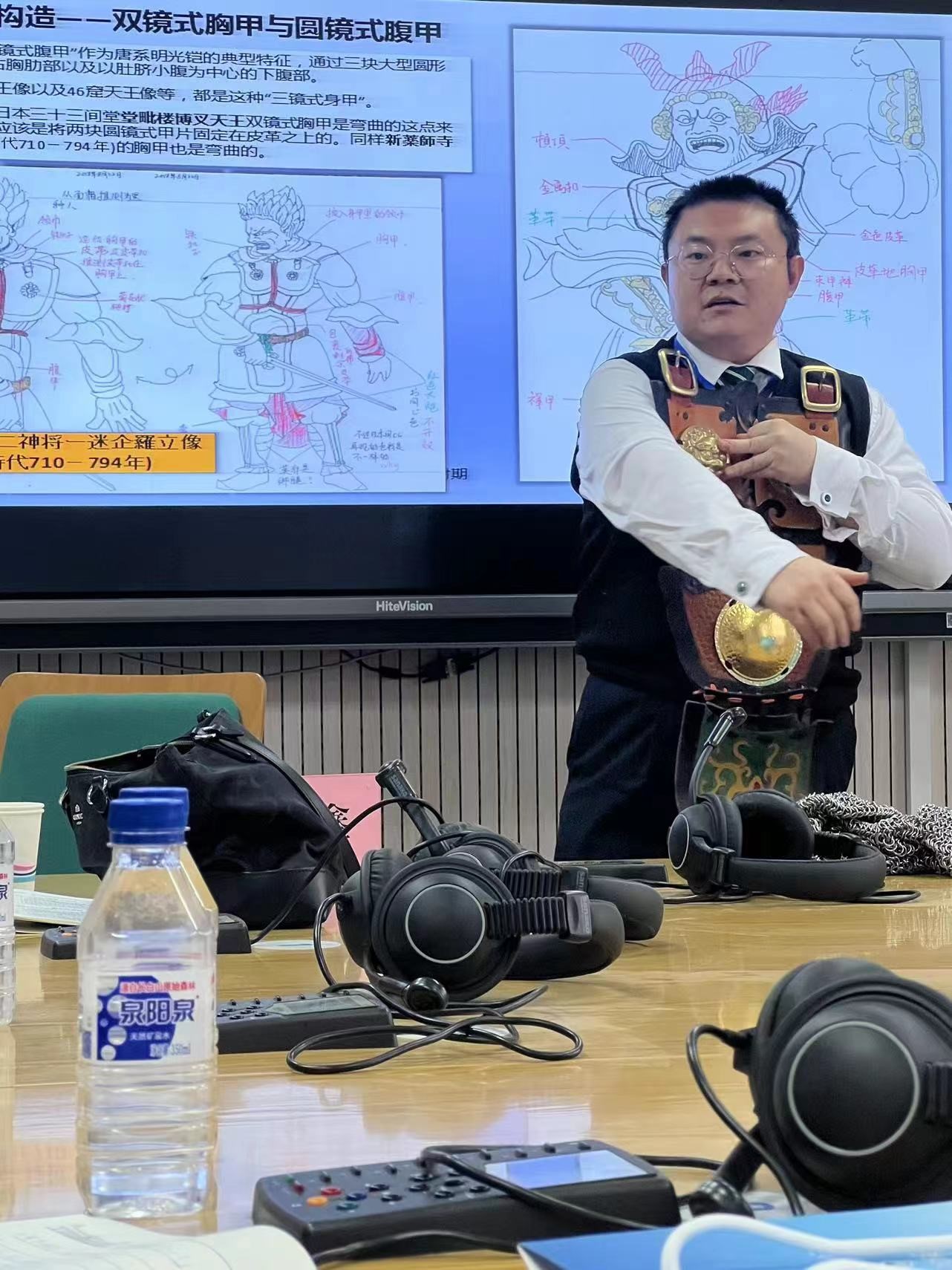 pg娱乐电子游戏官网日语系宋卓时老师在第七分会场上展示其制作的唐代明光铠复原件