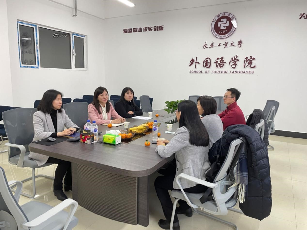 报告会后,pg娱乐电子游戏官网入口院长王轶,副院长李秀文、曾妍,英语系主任刘宇和部分英语系教师与张宏薇教授就翻译硕士专业学位授权点的申报工作进行了深入的交流和讨论。张教授从申报材料的撰写、翻译硕士的学科建设、翻译实践基地的选择以及未来翻译硕士点的评估工作等四个方面给予了宝贵意见。张教授的耐心指导令在场的教师们受益匪浅,并对未来的工作充满了信心与动力。