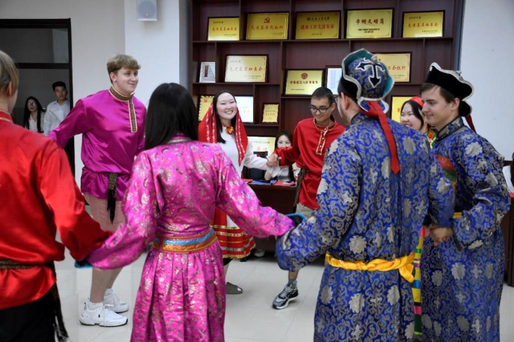 来自俄罗斯的师生们也以音乐和舞蹈的形式,向我们展示了俄罗斯文化。首先倾情演绎了«Утренний рассвет»(《黎明》)、«Музыка нас связала»(《音乐将我们联系在一起》)、«Звезда по имени Солнце»(《一颗叫做太阳的星星》、«Катюша»(《喀秋莎》)等经典歌曲,优美的旋律和丰富的情感表达,让每一位听众都感受到了俄罗斯音乐的独特魅力。此外,同学们还带来了具有浓郁民族特色的布里亚特民间舞蹈,她们身着传统服饰,随着音乐的节奏翩翩起舞,展现了俄罗斯民族舞蹈的风采和活力,同时也为这次文化交流活动画上了圆满的句号。