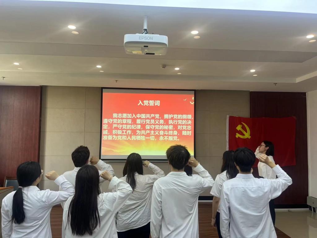 本网讯(通讯员 吴云坤)为庆祝中国共产党成立103周年,弘扬伟大建党精神,深入贯彻落实习近平新时代中国特色社会主义思想和党的二十大精神,进一步巩固和拓展主题教育成果,扎实开展党纪学习教育,pg娱乐电子游戏官网入口党委于6月28日组织新党员入党宣誓、老党员重温入党誓词主题党日活动。活动由学院学生党支部书记刘明慧主持,学生党支部党员参加了宣誓活动。