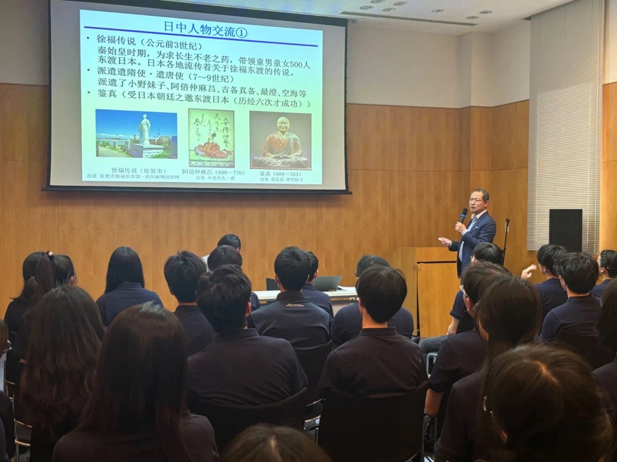 8月9日,在日本国驻上海总领事馆进行了一次意义非凡的参访与交流活动。赤松秀一总领事从历史、文化、经济等多个角度,详细阐述了中日两国自古至今的交流历程。他用生动的事例和翔实的数据,让我们深刻感受到两国在各领域合作中的重要性。特别是在谈及教育和文化领域时,赤松总领事指出,正是两国人民之间的相互理解与尊重,才使得中日关系在曲折中不断前行。他强调:“在全球化的今天,年轻一代的中日学生肩负着更多的责任。你们不仅是两国文化的传承者,更是未来友好关系的缔造者。”