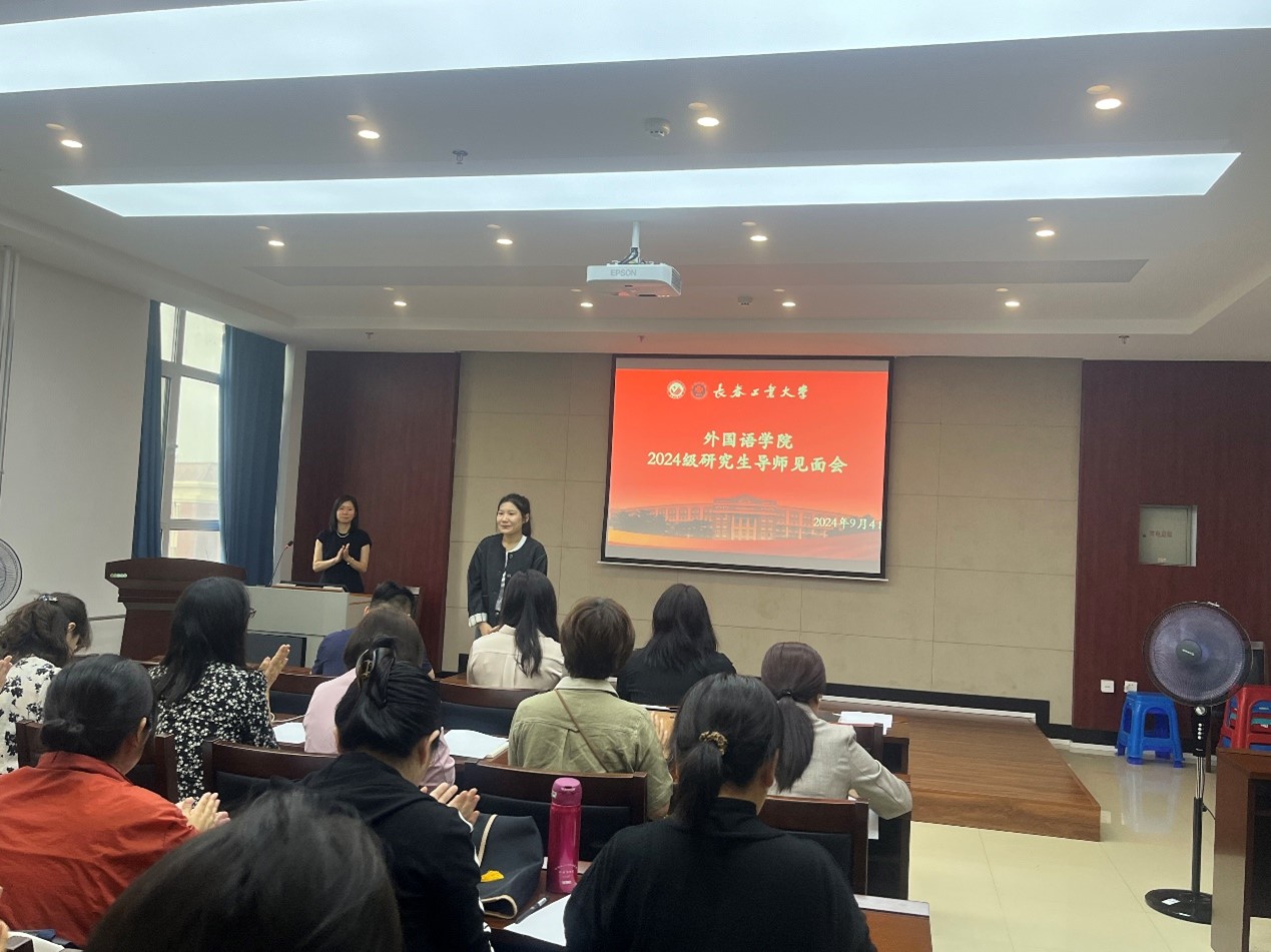 导师见面会后,副院长曾妍、俄语系主任张美、英语系主任刘宇分别给四个专业的研究生开展了“新生入学教育”,详细介绍了各专业的基本情况、课程设置、研究生培养、奖助体系、学生就业等内容,指导研究生确立学习目标,制定个人学习计划。