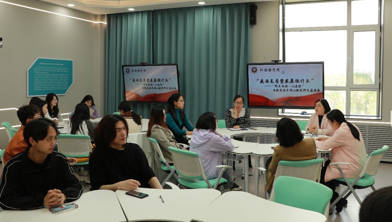 本网讯(通讯员 李雪)5月21日,学院日语系和俄语系党支部在学院374智慧教室举行“师生联动·AI启程”日俄专业师生座谈会。座谈会由党支部书记万丽娜老师主持,部分教师党员及本硕学生代表参加,共同探讨AI赋能外语学科发展新路径。