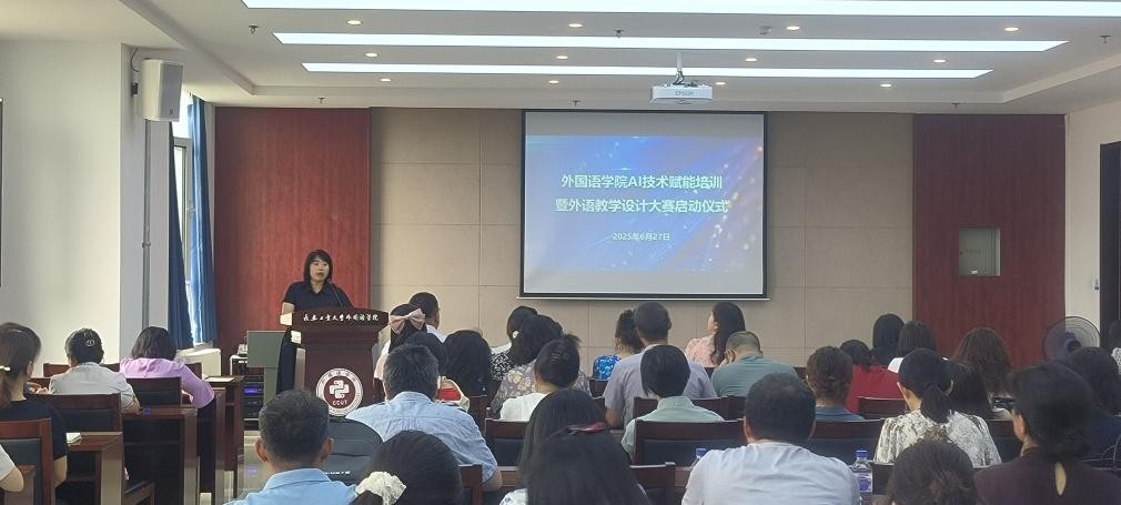 本网讯(通讯员 赵文佳)2025年6月27日下午,pg娱乐电子游戏官网入口举行了AI技术赋能培训暨外语教学设计大赛启动仪式。本次活动旨在推动人工智能技术与外语教育的深度融合,标志着学院在智能化教学改革征程中迈出关键一步。学院党政领导班子成员和学院全体教师参加会议。启动仪式由副院长李秀文主持。