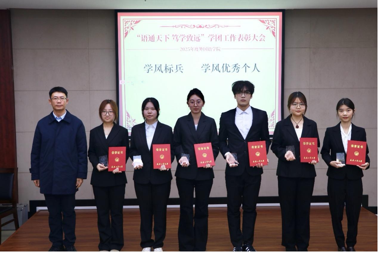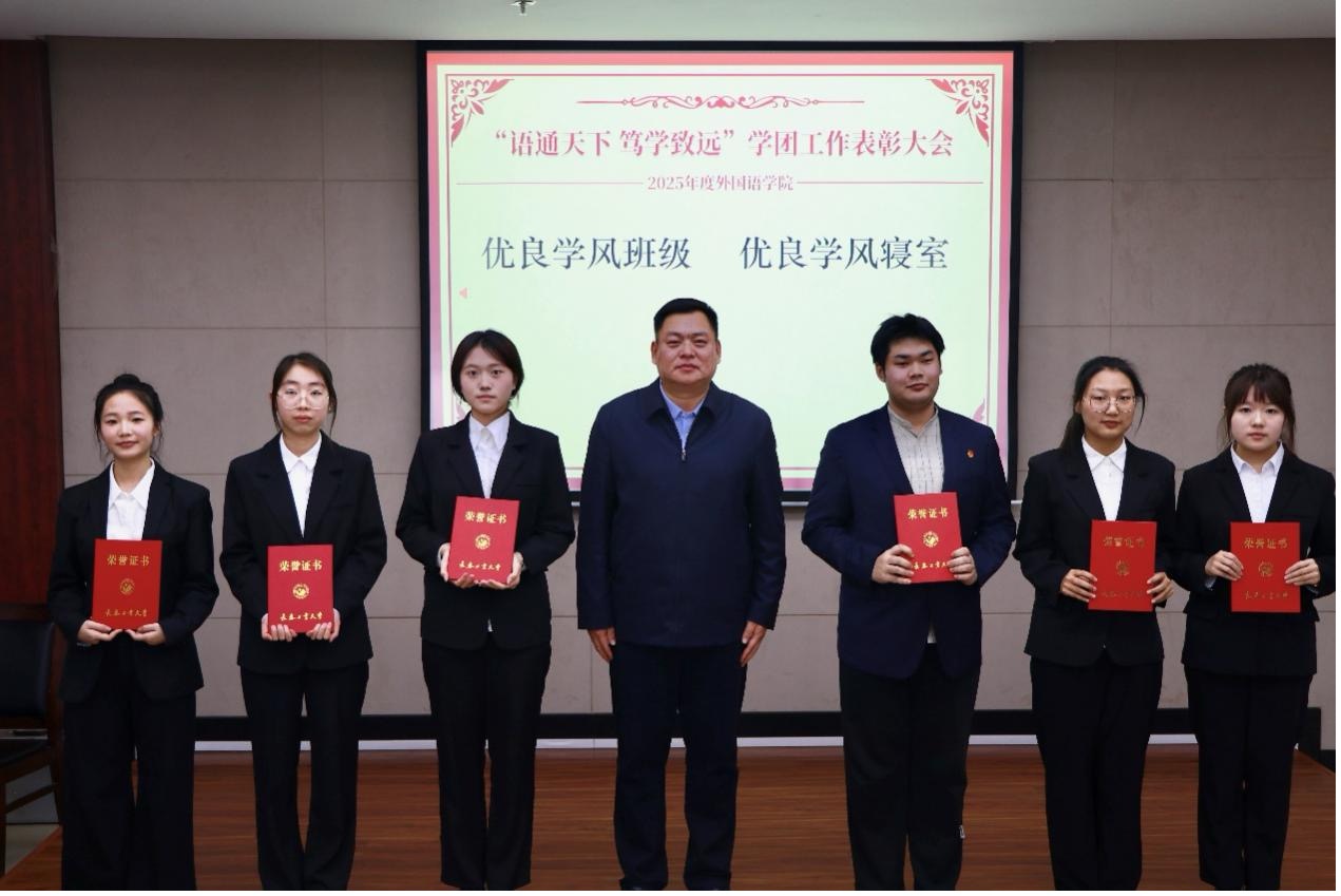 此次表彰大会集中展现了学院学团工作的丰硕成果,尤其体现了“语通天下、笃学致远”学风建设取得的显著成效,并对涌现出的优秀学子与先进集体给予了高度肯定。通过树立典型、表彰先进,进一步激发了同学们胸怀“语通天下”的格局担当,坚定了大家恪守“笃学致远”的求学热情。
