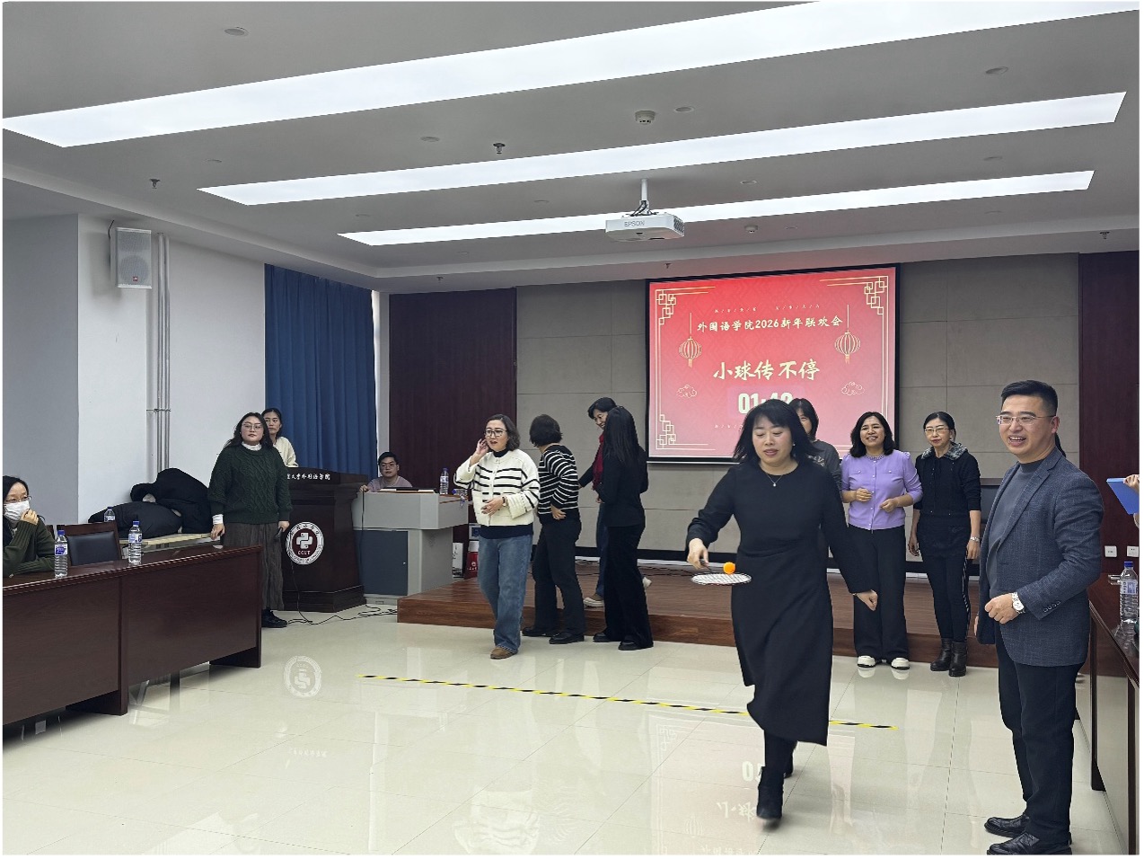 联欢会尾声,李秀文院长代表学院送上新春祝福。她向过去一年辛勤付出、为学院发展履职尽责的全体教职工致以最崇高的敬意,同时传递最诚挚的新年问候,感谢大家的坚守与奉献,并寄语全院教职工在新的一年里凝心聚力、携手前行,共谱学院发展新篇章。