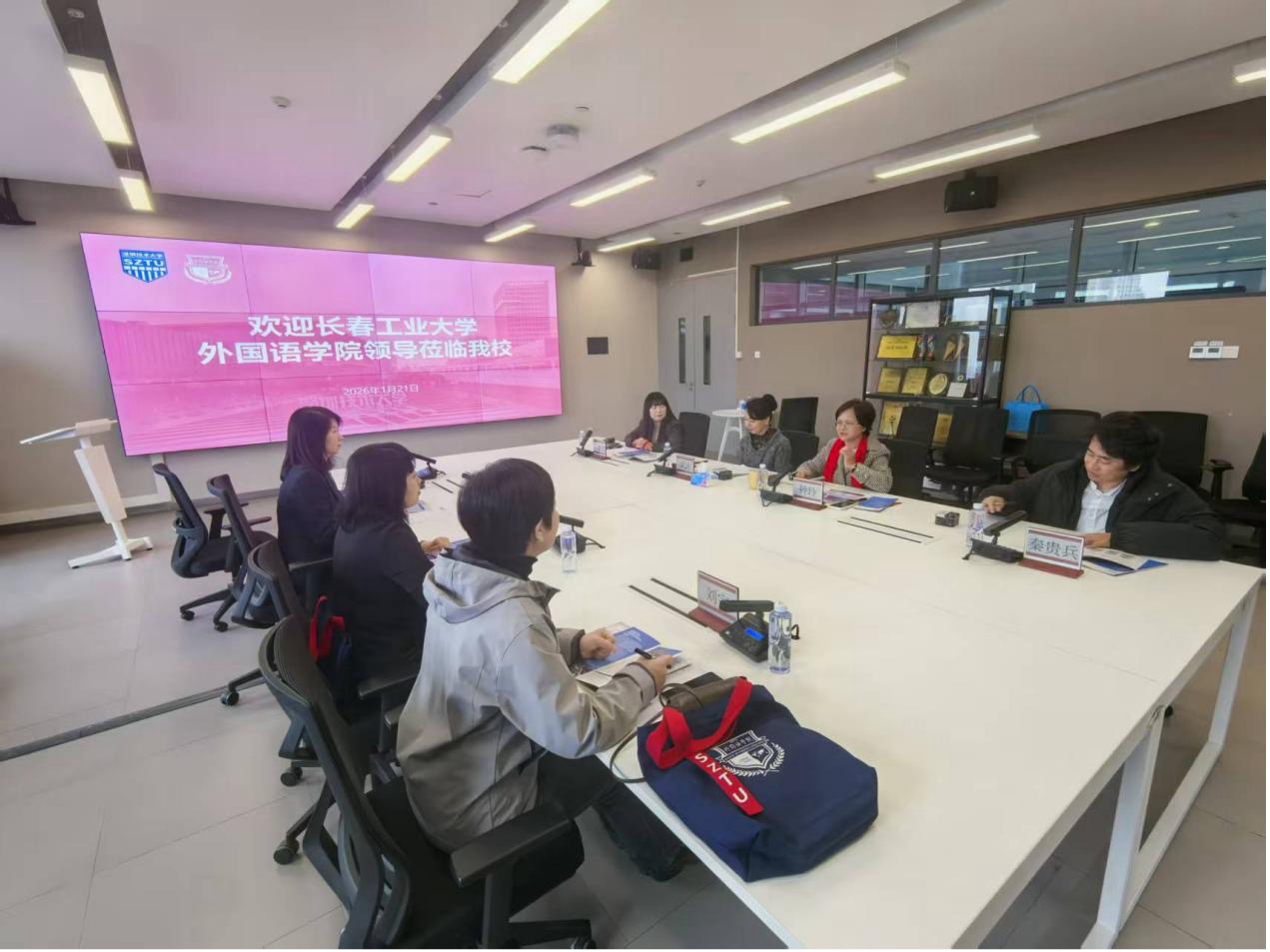 1月21日下午,调研团队访问深圳技术大学pg娱乐电子游戏官网入口。院长钟玲、副院长梁洁、邱蓓及各系主任热情接待并举行座谈。双方院长分别介绍了学院发展概况,随后围绕师资队伍建设、跨学科人才培养机制、校企协同育人平台构建等议题进行了深入交流。李秀文表示,深圳技术大学pg娱乐电子游戏官网入口在应用型外语人才培养、产教融合机制创新等方面的实践经验极具启发意义,为pg娱乐电子游戏官网“十五五”规划编制与人才培养方案优化提供了宝贵思路。会后,调研团队参观了学院教学与实训设施。