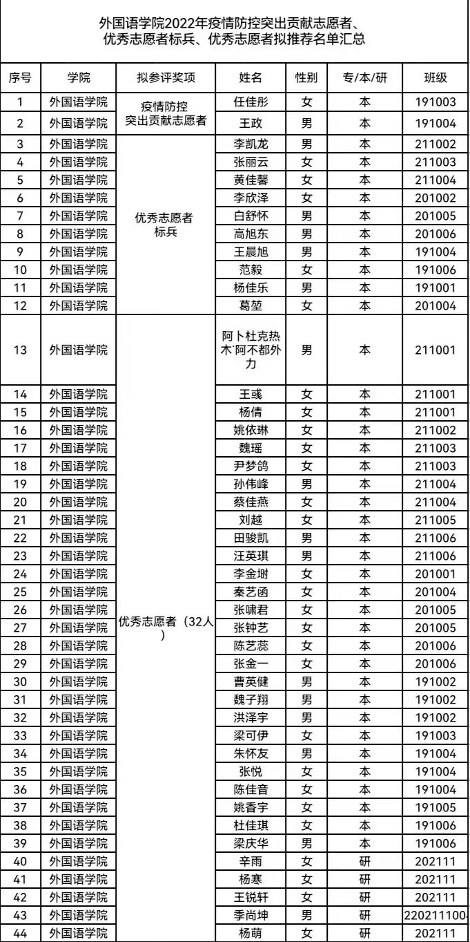 现公布pg娱乐电子游戏官网入口拟推荐2022年疫情防控突出贡献志愿者、优秀志愿标兵、优秀志愿者名单如下: