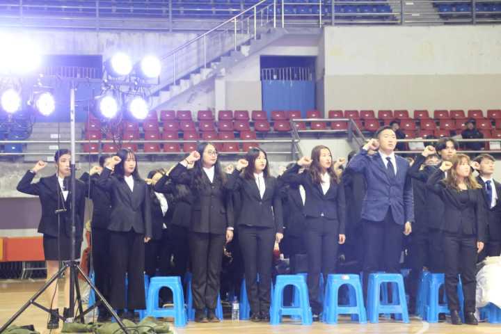 大会由16级社团联合会主席潘奕璇主持。会议伴随着同学们齐唱《中华人民共和国国歌》中展开。