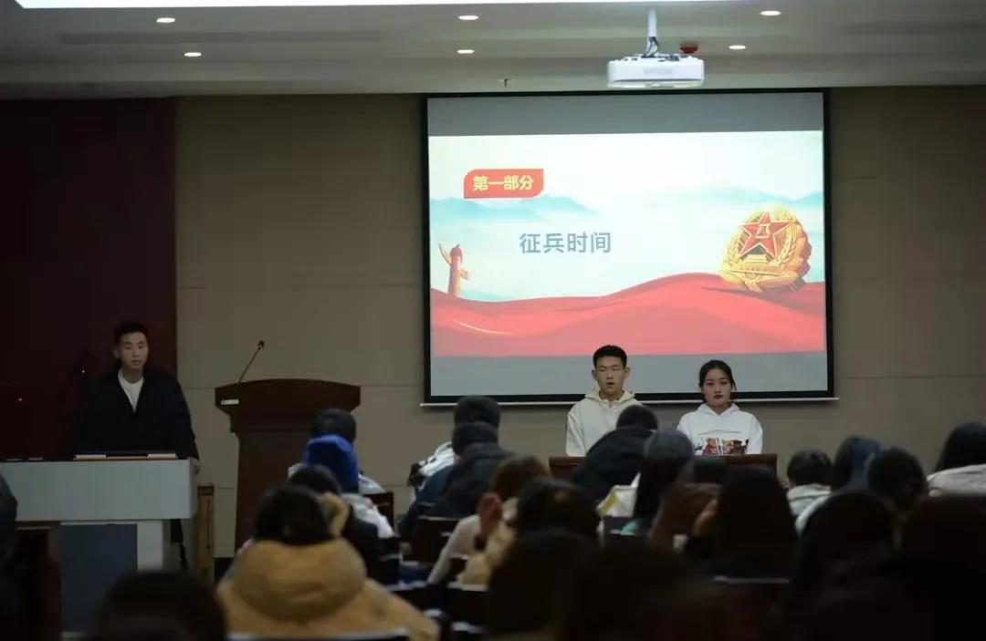 为推进新时代国防和军队现代化建设,向部队输送高素质兵员,鼓励我校大学生参军入伍,普及征兵政策,营造爱国崇军的大学文化氛围,确保完成上级下达的征兵工作,pg娱乐电子游戏官网入口于12月3日召开了征兵宣讲会。