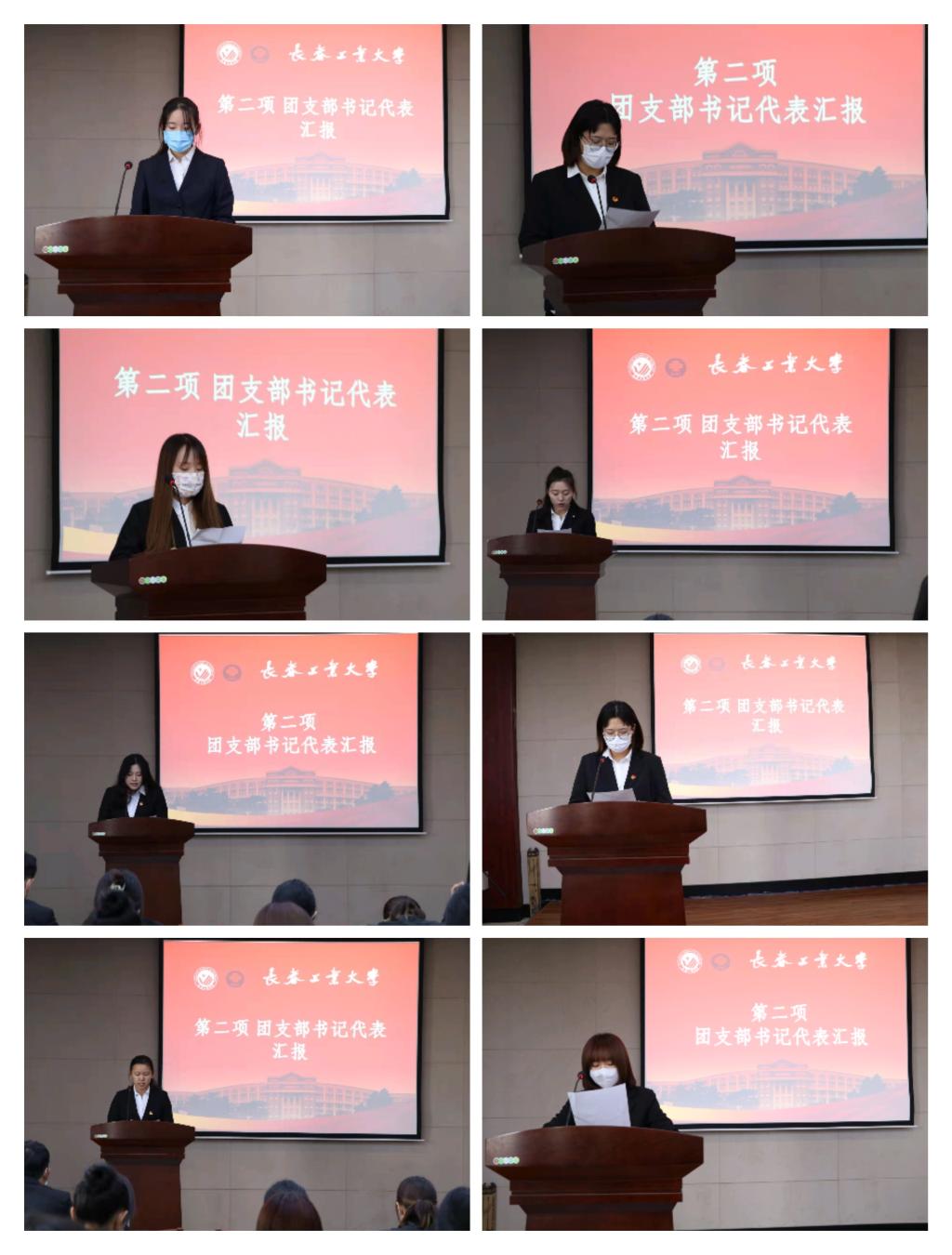 入团不只是形式,团徽也不只是标志,它们应该成为团员在学习和工作中鞭策自己进取的一个标准。大会伊始,各班团支部书记庄严宣读了入团誓词,深刻体会了作为一名团员的神圣使命。在学习交流中,各团支部书记也积极对成绩清单、问题清单、荣誉清单以及日后根据现存问题的改正措施进行了汇报总结,明确了以后的学习和工作方向。交流了各成员在工作上的宝贵经验,进一步巩固了团组织纪律与素质。