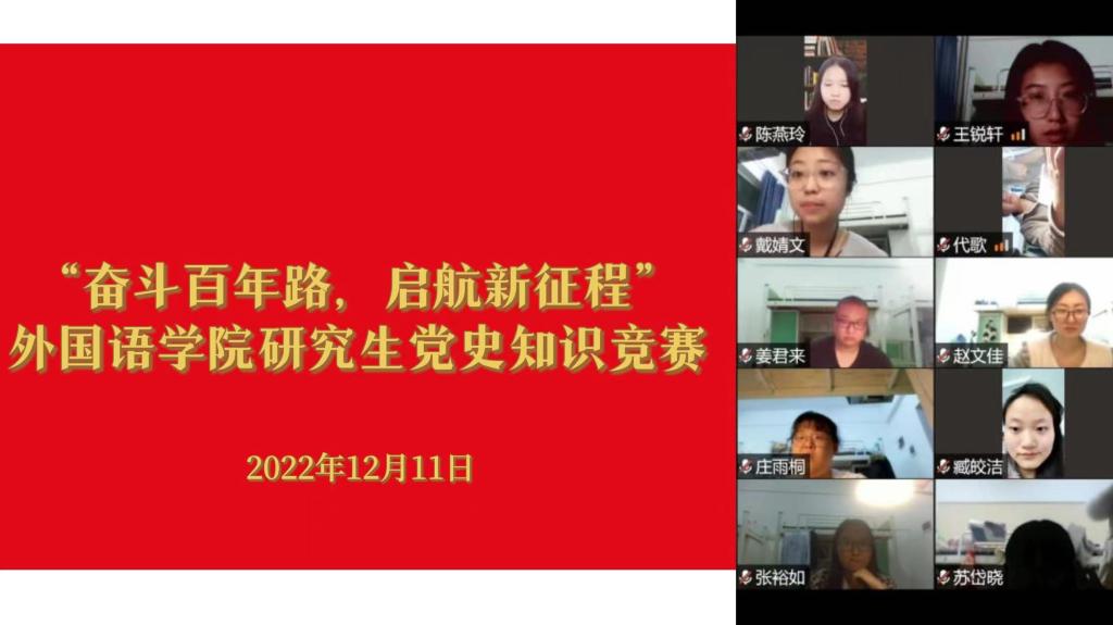 本网讯(通讯员 江炜彬)2022年是中国共产党建党101周年。为深入学习党的历史,继承和发扬党的优良传统,加强爱国主义教育,加深对党的知识宣传,进一步强化政治品格,激励同学们在实现中华民族伟大复兴中国梦的新征程上奋勇前进。pg娱乐电子游戏官网于2022年12月11日在线上举办了党史答题活动,pg娱乐电子游戏官网入口全体研究生积极参加。