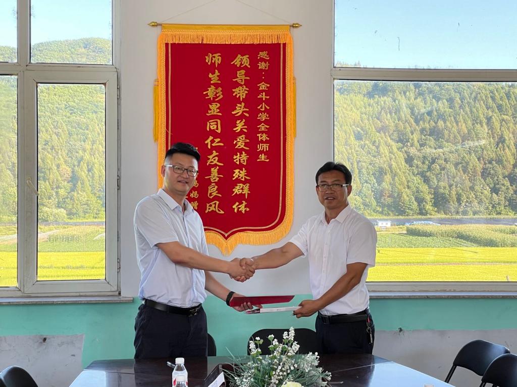 随后,走访团队来到金斗朝鲜族满族乡中心小学,校长李龙介绍了学校的基本情况,王轶和隗英辉校友共同为pg娱乐电子游戏官网入口大学生就业创业实习基地揭牌,党委副书记于伟代表学院与金斗小学签订了大学生就业、实习、实践基地合作协议,并就学生实习、学业帮扶等方面进行了深入探讨。